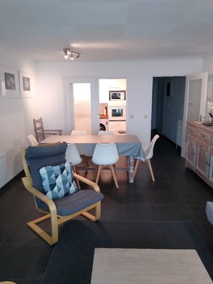 Appartement met 2 slaapkamers : 1 slaapkamer met 2 enkele bedden(200 X 90), 1 slaapkamer met 1 tweepersoonsbed voor (200 x 160). Allemaal éénpersoonsdonsdekens.